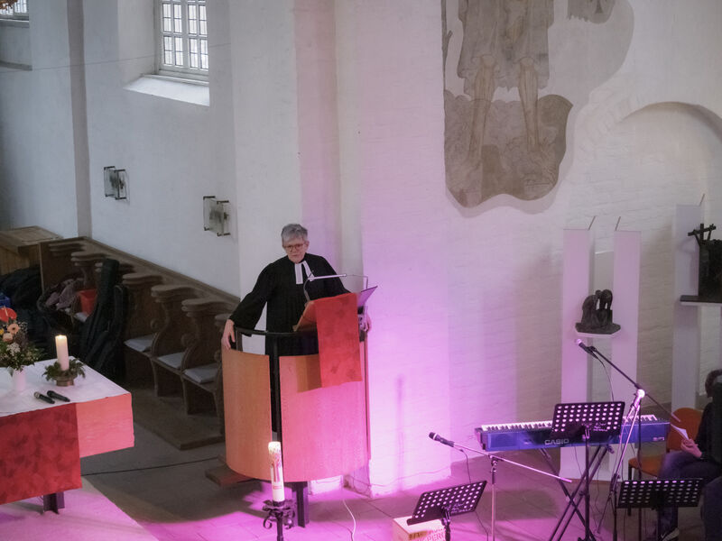 Jutta Rühlemann erinnerte in ihrer Ansprache an den Brief von Paulus an die Gemeinde von Korinth, wo alle sehr zerstritten waren: „Wir wissen alle, wenn Zoff und Streit herrschen, führt der Spruch ‚nun lasst uns alle mal wieder liebhaben‘ zum Gegenteil. Konflikte aushalten und Wege suchen, gehört zum Glauben dazu.“ Gerade heute mit Sicht auf die Konflikte in der Welt, stehe die Frage im Raum, was habe das mit Liebe zu tun? Viele hätten die Hoffnung schon aufgegeben und fragen sich, was hilft es da, zu sagen, alles möge in Liebe geschehen.
