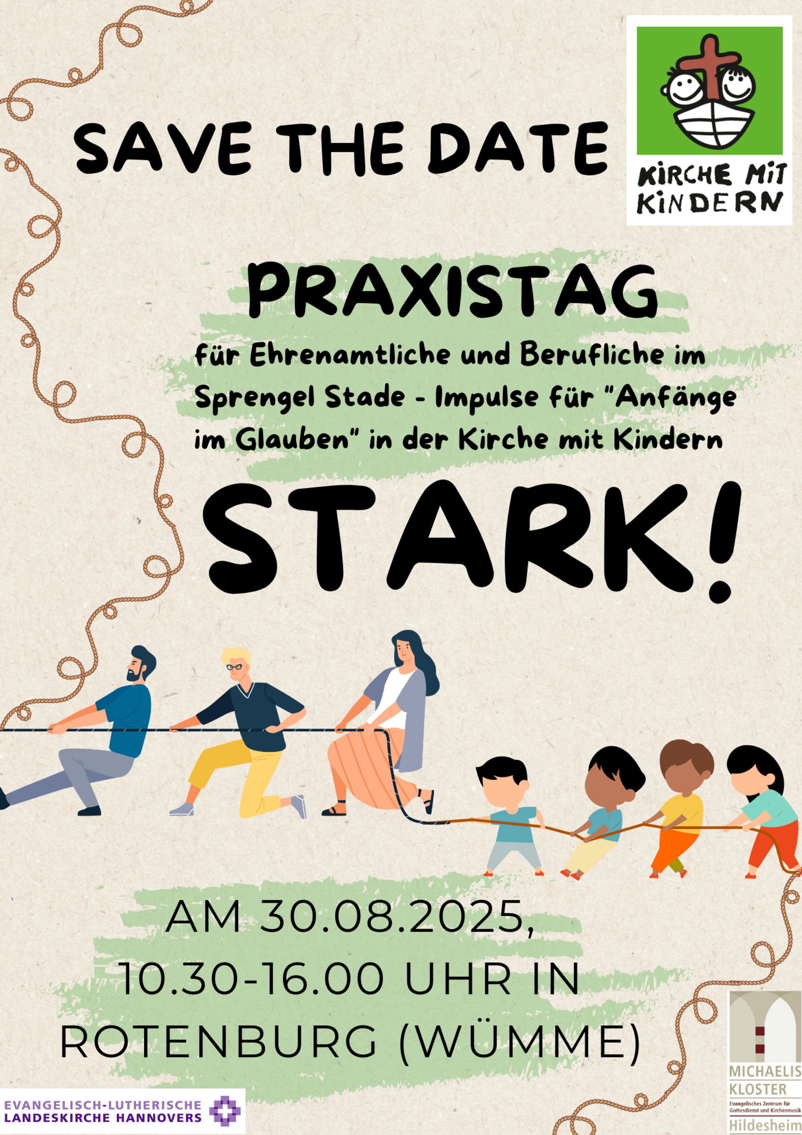 Superintendent Dr. Michael Blömer (Rotenburg) ist an dem Tag dabei. Unter dem Motto „Stark!“ wird es um die Frage gehen, wie Kirche Kinder stark machen kann. Einerseits werden Partizipation und Kinderrechte thematisiert werden, aber auch „starke Glaubensgeschichten.“ Das Programm ist ein Beitrag zum Votum der letzten Synode der Landeskirche, „Anfänge im Glauben“ zu ermöglichen.