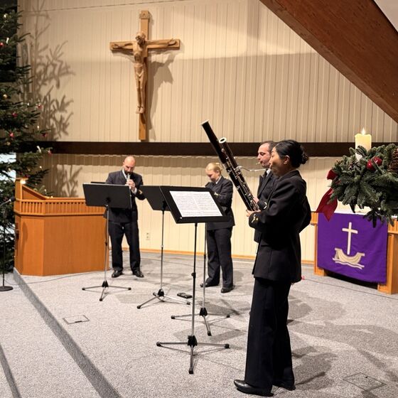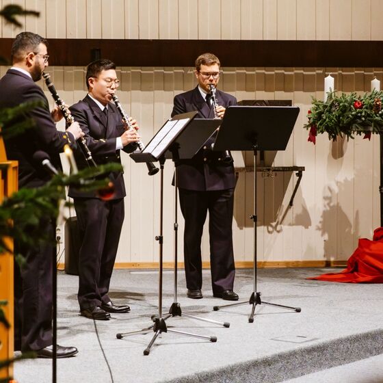 Ein besonderer Klang, ein besonderes Ziel: Die Bundeswehr hatte kürzlich das Marinemusikkorps Wilhelmshaven zu einer Konzertstunde im Advent eingeladen – und die Resonanz konnte sich hören lassen. Neben musikalischen Highlights der Holzblasinstrumente stand im Kirchenzentrum des Standorts Heilshorn, dem Frère Roger - Haus, vor allem der gute Zweck im Mittelpunkt. Während des Konzerts wurden Spenden von Konzertbesuchenden gesammelt, die sich am Ende auf über 3.600 Euro summierten.