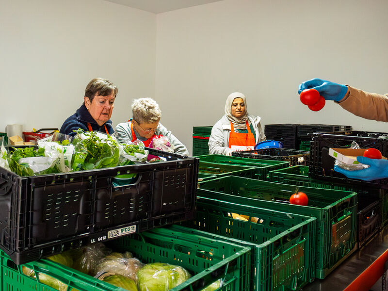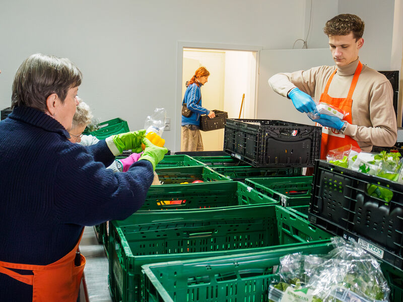 Beim Obst und Gemüse half Linus Stubbemann beim Sortieren. Linus war zum ersten Mal dabei. Schnell war er überzeugt von der positiven Arbeit und berichtete begeistert, dass er gerne weiter ehrenamtlich helfen möchte. Stubbemann: „Superstark, dass die Leute hier ihre Freizeit verbringen, helfen und dabei alle gute Laune haben. Krass, dass sich so viele Leute engagieren.“