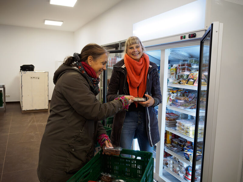 Eingearbeitet wird Linus von Gabriele Vogel-Schröder. Sie hilft seit acht Jahren in der Tafel und merkt augenzwinkernd an: „Ich habe damals eine Anzeige in der Zeitung gelesen und mich zur Überraschung meiner Familie für die Tafel entschieden. Erstaunlicherweise wurde ich auch angenommen. Ich höre hier erst wieder auf, wenn ich zusammenbreche. Man lernt so viele nette neue Leute kennen. Wir sind eine großartige Truppe, können gut miteinander arbeiten und haben eine Menge Spaß dabei.“