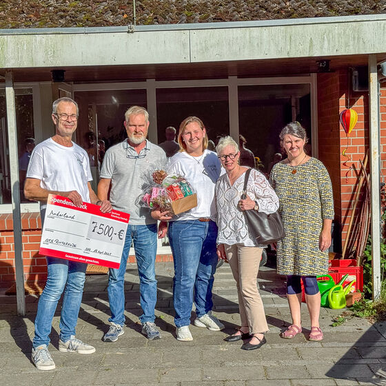 Gemeinsam mit Gerd Rühlemann leitet sie die Einrichtung, die Kindern und Jugendlichen nach dem Verlust eines nahestehenden Menschen hilft. „Wir haben auch schon von Anderland profitiert", betonte Grimmelijkhuizen bei der Scheckübergabe durch Detlef Torner, den Vorsitzenden des Schulfördervereins.