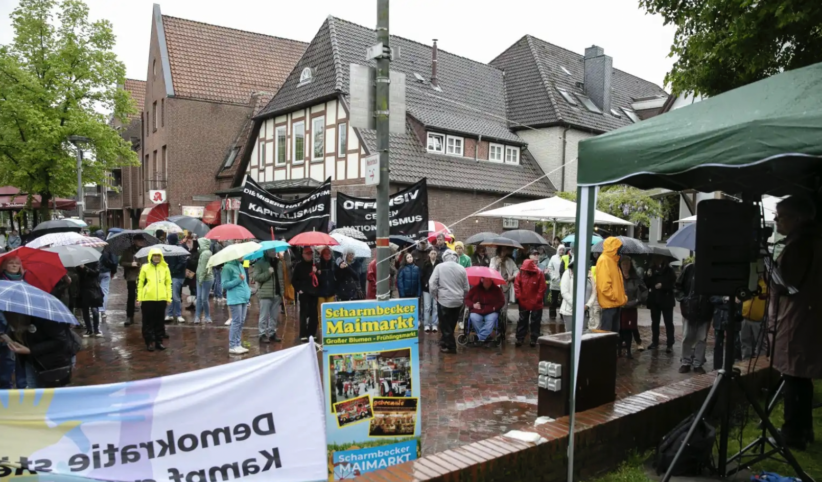 Mehr als 150 Menschen haben sich am Sonntag auf dem Scharmbecker Marktplatz versammelt, um ein Zeichen für Demokratie und gesellschaftlichen Zusammenhalt zu setzen.