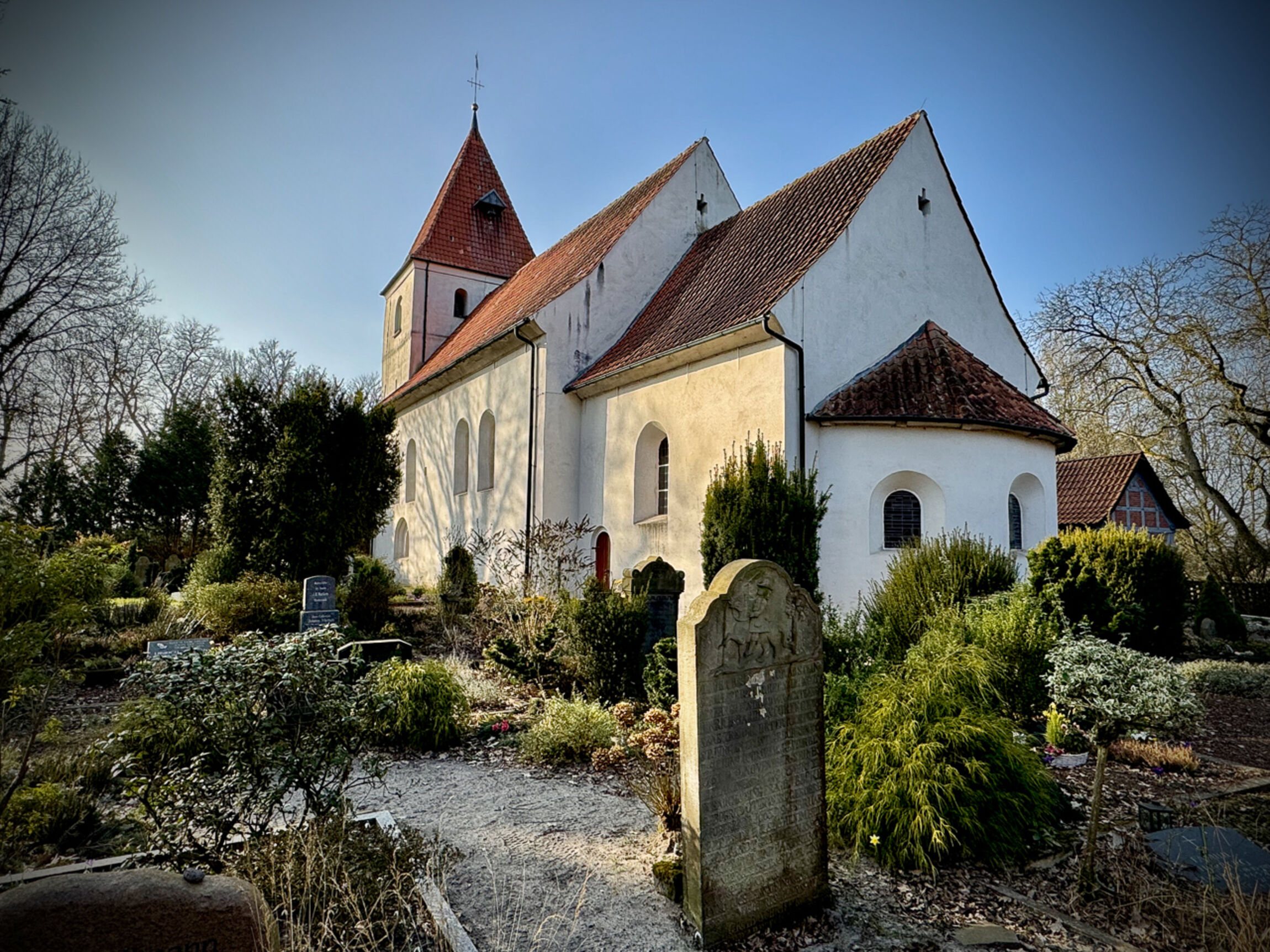 „Wir bereiten alles vor, damit Paare einfach kommen und ihre Liebe unter Gottes Segen stellen“, sagt Pastorin Christina Riegert aus Wallhöfen. Zusammen mit ihren fünf Kolleginnen und Kollegen Friederike Köhn, Henning Mahnken, Tanja Kamp-Erhardt, Kirsten Ludewig und Benjamin Fromm, der Kirchenkreiskantorin Caroline Schneider-Kuhn, dem Kreisposaunenwart Florian Kubiczek, Renate Meyerhöfer-Bratschke und der Diakonin Janna Eckert, gestaltet sie den Tag in der St.-Jürgens-Kirche im Ortsteil Sankt Jürgen. Die historische Kirche liegt zwischen Marsch und Wiesen, umgeben von Fachwerk und viel Grün, und wirkt, als hätte sie lange auf genau so einen Tag gewartet.