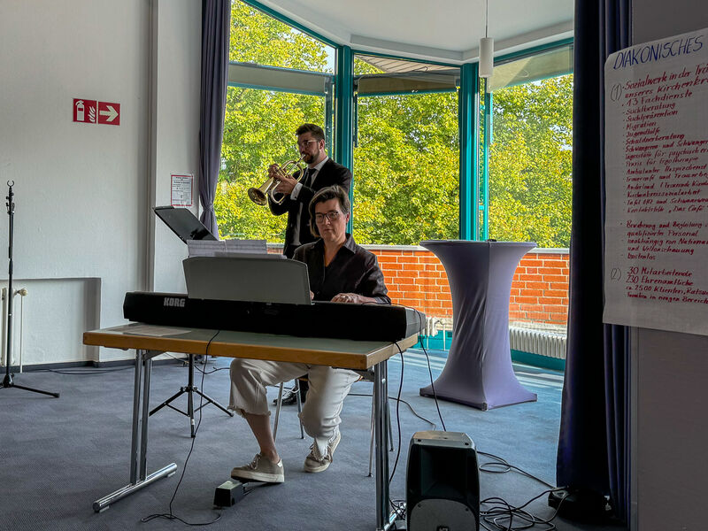 Kirchenkreiskantorin Caroline Schneider-Kuhn und Kreisposaunenwart Florian Kubiczek berichteten von der Gründung des Fachdienstes Kirchenmusik. Momentan arbeite jeder für sich, und das soll sich nun unter einem gemeinsamen Dach im Fachdienst Kirchenmusik ändern. Kubiczek: „Wir wollen in die Öffentlichkeit. Dazu haben wir einen Flyer mit aktuellen Bildern und wichtigen Schlagwörter gemacht. Wir wollen zeigen, wer wir sind, sowie dass wir Qualität haben in der Ausübung und im Unterricht. Wir haben ein großes Angebot.“