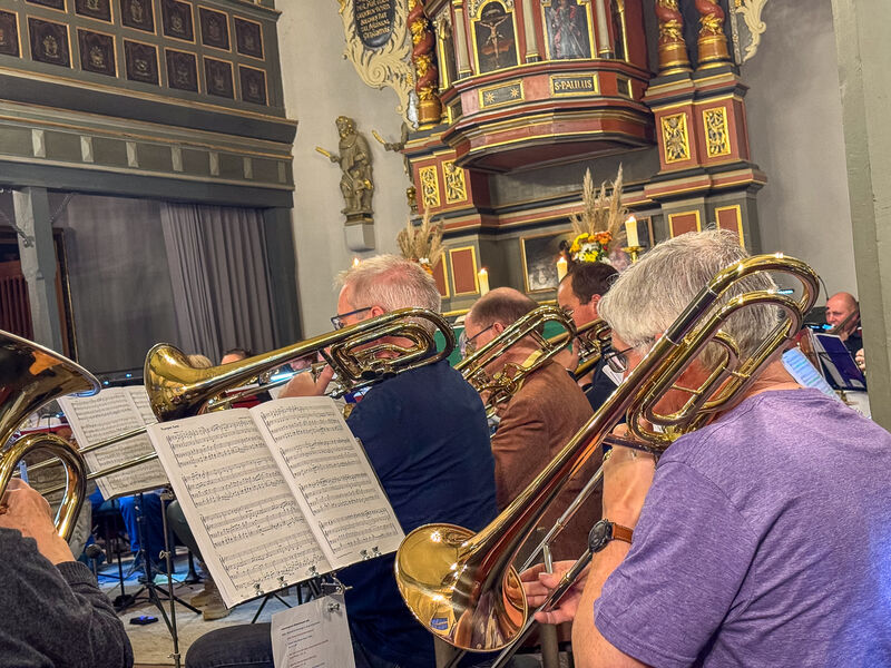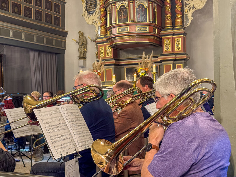 Mit Stücken von Simon Langenbach, Friedrich Veil und Jens Uhlenhoff spannte der Bläserchor schließlich den Bogen bis zur Gegenwart. Das Publikum dankte mit langem Applaus und sang beim Abschlusslied „Komm, Herr, segne uns“ von Dieter Wendel mit.