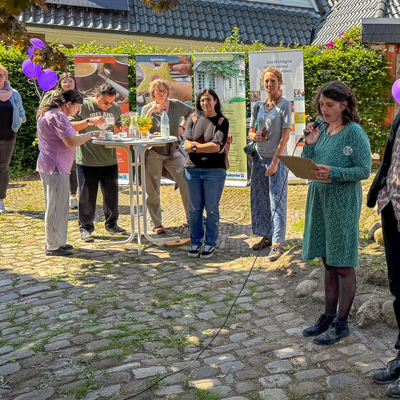 Zahlreiche Gäste – darunter Besucher, Ehrenamtliche und Offizielle – versammelten sich bei strahlendem Sonnenschein im ältesten Bürgerhaus der Stadt in der Hundestraße, das liebevoll restauriert seit 1996 die Heimat der Einrichtung ist. Bereits bei der Eröffnung vor drei Jahrzehnten zeigten sich die Gäste beeindruckt vom Konzept, wie ein damaliger Bericht der Wümme-Zeitung dokumentiert: Ein Ort, der Menschen mit seelischen Erkrankungen annimmt, unterstützt und in die Mitte der Gesellschaft stellt.