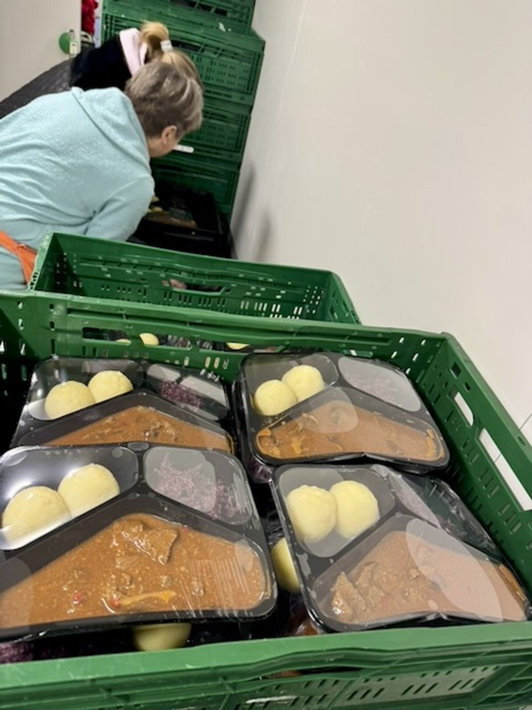 Erstmals profitierten in diesem Jahr auch die Nutzerinnen und Nutzer der Tafel Osterholz-Scharmbeck von der Aktion. Insgesamt 400 Portionen wurden bereitgestellt. Der Kühlraum der Tafel war gefüllt mit sorgfältig verpackten Menüs: verschiedene Fleischgerichte wie Rouladen oder Gulasch, dazu Rotkohl, Klöße und passende Soßen. Die Speisen sind vorgekocht und können zu Hause unkompliziert im Backofen oder in der Mikrowelle fertig zubereitet werden.